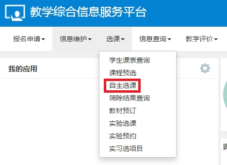选课操作:(a)输入账号(学号)密码登录教务系统(忘记密码请提前联系本学院教学秘书老师进行初始化); (b)进入“选课”>>“自主选课”,进入选课页面后,请使用上方的查询工具条查询出所需要选的教学班(选课前6月23日11点半前能查询到可选择的课程,之后无法看到课程,此时系统设置为12点30自动开放选课),在教学班的最右侧选择选课即可,如需退课,选择退选即可。详细操作见以下图示: